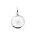 Echt zilveren hoogglans gepolijste hanger in de vorm van een klavertje vier met daaromheen een bewerkte ronde rand om aan een ketting of armband te hangen. Dit bedeltje heeft een diameter van 13 millimeter.