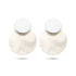 Zilveren oorstekers met een ronde hanger van parelmoer. De totale hoogte van deze oorhangers is 2.9 centimeter.