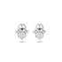 Zilveren oorbelletjes in de vorm van een Hamsa Handje, ook wel Handje van Fatima of Gelukshandje genoemd, met in de handpalm een blauw emaille oogje.