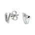 Echt zilveren oorknoppen in de vorm van een 'V' met twee ingeklemde zirkonia steentjes. De ene helft van deze oorbel is gematteerd en de andere helft is glimmend gepolijst. Deze zilveren oorbellen hebben een afmeting van 8 x 7 millimeter.