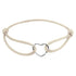 Trendy armband van satijnkoord met in het midden een zilveren hartje. De satijnkoord armband is verstelbaar van maat. Door de knopen heen- en weer te schuiven kun je het armbandje op maat maken. Deze armband van satijn is verstelbaar van 13 tot 26 centimeter.